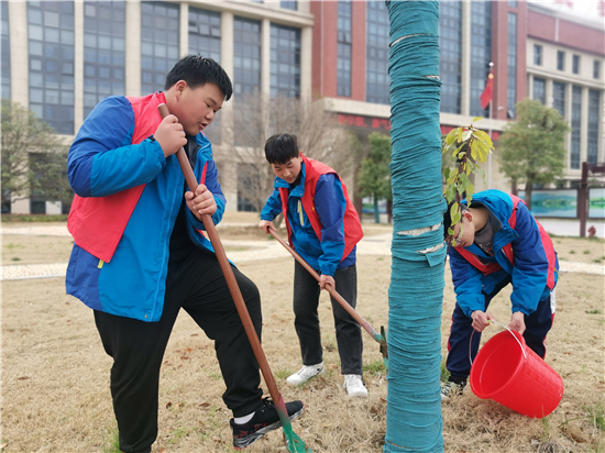 3月12日,周口經(jīng)濟開發(fā)區(qū)實驗學校開展以“綠色環(huán)保、美化校園”為主題的植樹節(jié)實踐體驗活動?;顒訉W習知識與勞動實踐結(jié)合起來,通過召開綠色環(huán)保主題班會,號召學校環(huán)保志愿者給校內(nèi)樹木澆水、松土、施肥,清理校內(nèi)外綠化帶中的枯草、雜物等,用實際行動踐行“愛綠護綠”,進一步增強了學生的環(huán)保意識,提高了學生的道德水平和文明素質(zhì)。③7