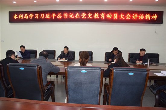 會(huì)議指出,習(xí)近平總書記的重要講話,深刻闡述了黨史學(xué)習(xí)教育的重大意義,深刻闡明了黨史學(xué)習(xí)教育的重點(diǎn)和工作要求,對(duì)黨史學(xué)習(xí)教育進(jìn)行了全面動(dòng)員和部署,為開(kāi)展好黨史學(xué)習(xí)教育指明了方向,提供了根本遵循。全市水利系統(tǒng)黨員干部要以飽滿的政治熱情、高度的政治自覺(jué)、扎實(shí)的工作舉措開(kāi)展好黨史學(xué)習(xí)教育,銘記光輝歷史,學(xué)習(xí)紅色文化,傳承紅色基因,弘揚(yáng)紅色精神,以實(shí)際行動(dòng)向中國(guó)共產(chǎn)黨成立100周年獻(xiàn)禮。