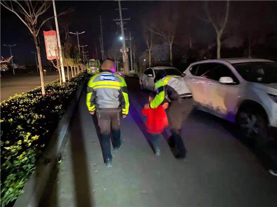 3月12日晚,鄲城縣交警大隊(duì)鐵騎中隊(duì)副中隊(duì)長張鑫值班過程中發(fā)現(xiàn)一位迷路小孩,張新等人想方設(shè)法把孩子護(hù)送回家。