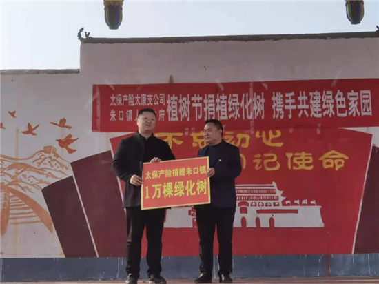 “這楸樹作為行道綠化,真不賴,現(xiàn)在栽上澆點水就能活……”在太康縣朱口鎮(zhèn)周寨村參加捐贈儀式的洼陳村村民代表張紅飛說。3月12日,植樹節(jié)當(dāng)日,太康縣朱口鎮(zhèn)與太平洋保險財產(chǎn)保險公司周口支公司在周寨村舉行了“植樹節(jié)捐植綠化樹,攜手共建綠色家園活動”,太平洋保險財產(chǎn)保險公司為朱口鎮(zhèn)捐贈綠化樹10000棵,助力朱口鎮(zhèn)建設(shè)綠色家園。太平洋保險公司周口支公司總監(jiān)豆威、總經(jīng)理趙磊和鎮(zhèn)長江海洋等出席了會議,全鎮(zhèn)52個村黨支部書記、100多名群眾代表參加了會議。