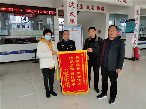 3月15日上午,周口市遠大運輸集團、河南平安運輸集團等企業(yè)代表向川匯區(qū)交通運輸局運管局貨運管理辦公室、證照室送來了寫著“熱情服務、主動作為,情系企業(yè)、排憂解難”和“心系業(yè)戶、高效便民”的錦旗,感謝貨運管理辦公室積極協(xié)調(diào),協(xié)助該集團公司查處應淘汰國三車輛,解決了企業(yè)難題,并對證照室積極服務企業(yè),采取“五分鐘辦證”措施表示感謝。