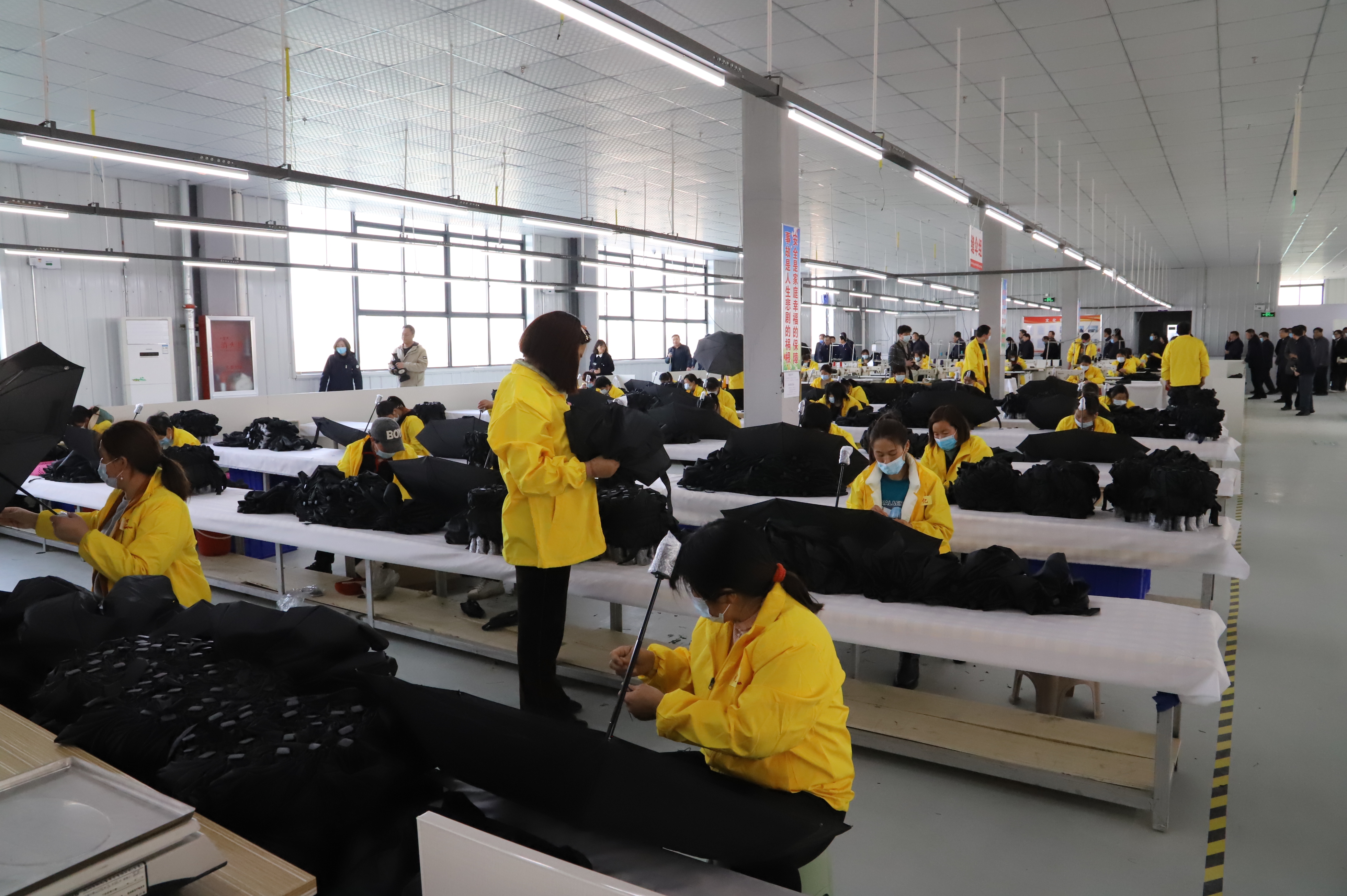 陽春三月,鄲城縣傘業(yè)產(chǎn)業(yè)園內(nèi)三和傘業(yè)、兆億傘業(yè)、皓泰傘業(yè)陸續(xù)投產(chǎn)。三和傘業(yè)還新建了工藝傘、布傘生產(chǎn)車間,每年數(shù)以千萬計(jì)的鄲城制造雨傘銷往世界各地,為全球遮風(fēng)擋雨。