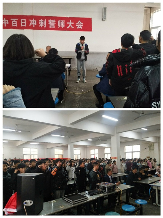 在學(xué)生及教師代表發(fā)言中,九五班楊佳慧說(shuō):“感謝九年級(jí)全體教師的辛苦付出。我必將不負(fù)青春,不負(fù)厚望,奮斗一百天,拼出美好明天!”九三班語(yǔ)文老師張梅代表全體九年級(jí)教師莊重承諾:“關(guān)鍵的一年,關(guān)鍵的一百天,全體教師必將上課有目標(biāo)、復(fù)習(xí)有重點(diǎn)!竭盡全力為決勝中招保駕護(hù)航!”