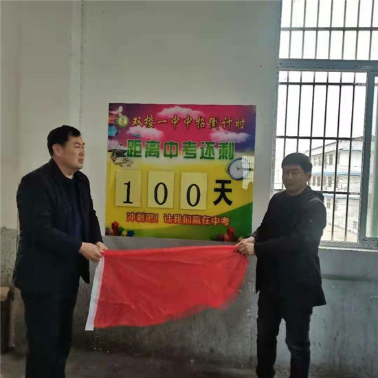 大會(huì)在雄壯的國(guó)歌聲中拉開帷幕。孟獻(xiàn)峰與田振為中考倒計(jì)時(shí)牌揭幕。隨后,中心校拿出兩千元現(xiàn)金,對(duì)該校一??荚囍腥〉脙?yōu)異成績(jī)的同學(xué)進(jìn)行表彰。