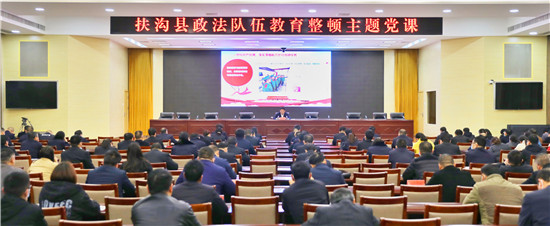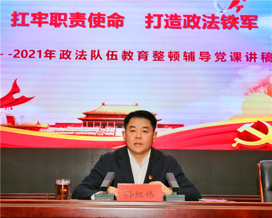3月18日下午,扶溝縣委書記、縣政法隊伍教育整頓工作領導小組組長孫紅偉以《扛牢職責使命,打造政法鐵軍》為題為扶溝政法隊伍講教育整頓講專題黨課??h委常委、政法委書記張禹主持學習。