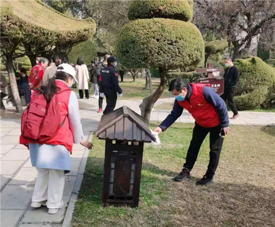 二月二朝祖會(huì)開(kāi)幕以來(lái),淮陽(yáng)區(qū)眾多單位的志愿者紛紛走進(jìn)太昊陵景區(qū)和街頭,或幫游客指路,或保潔路段和設(shè)施衛(wèi)生,或提供開(kāi)水等,那一抹亮麗的紅色成為一道流動(dòng)的風(fēng)景。