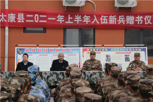 于永前表示,此次贈書儀式意義重大,體現(xiàn)了縣委、縣政府對太康縣2021年上半年新兵的關(guān)心和厚愛;體現(xiàn)了全縣160萬父老鄉(xiāng)親對我縣即將入伍的190名新兵的期望和重托;希望每名同志安心入伍,踏實(shí)工作,把太康縣好的光榮傳統(tǒng)及各個(gè)家庭好的家風(fēng)帶到部隊(duì),把太康水東精神帶到部隊(duì),在部隊(duì)建功立業(yè)。