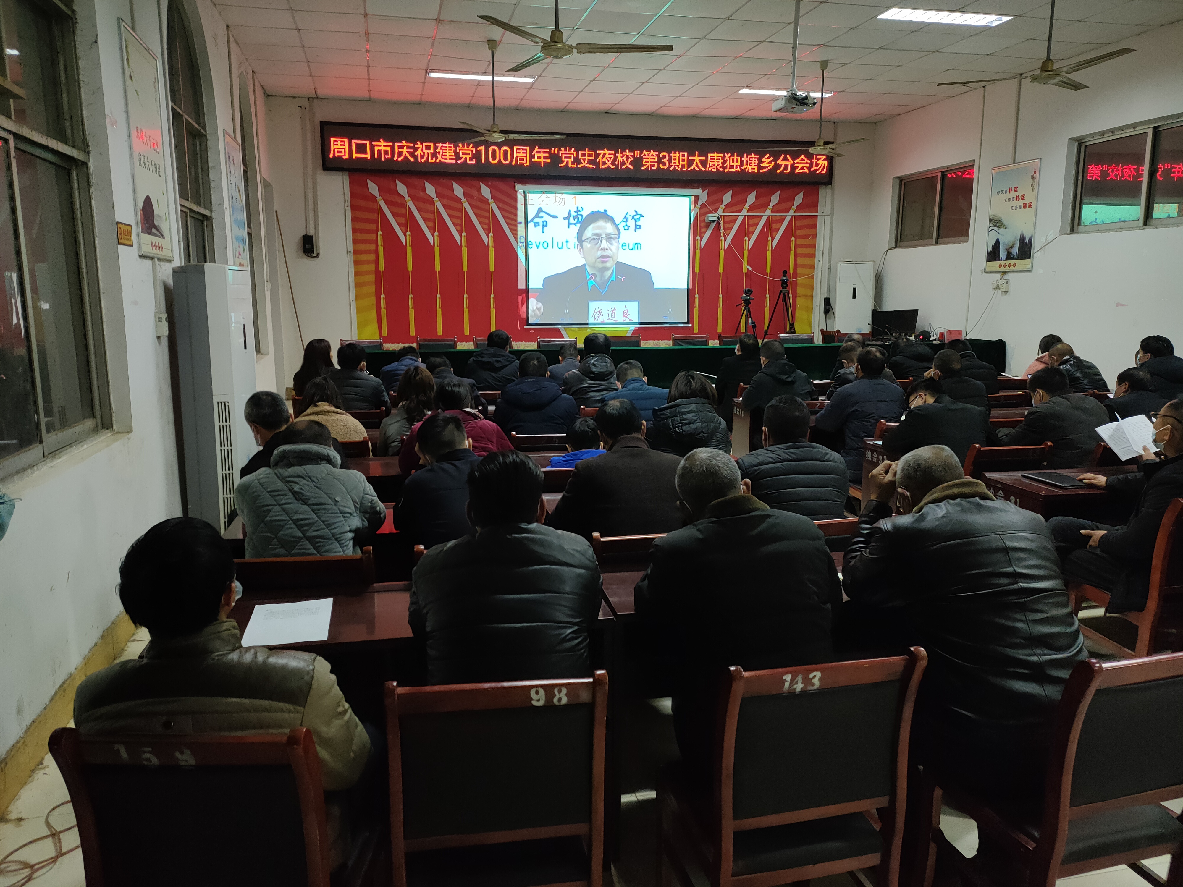 3月18日晚,周口市舉辦慶祝中國共產(chǎn)黨成立100周年“黨史夜校”第三期專題講座。太康縣獨塘鄉(xiāng)組織鄉(xiāng)領(lǐng)導班子、鄉(xiāng)政府機關(guān)黨支部全體黨員、34個行政村支部書記、鄉(xiāng)直機關(guān)負責人、各行政村全體黨員、兩委干部在鄉(xiāng)政府會議室和各行政村分會場收聽收看。