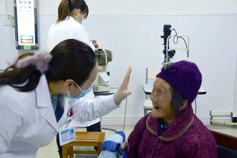 徐君副主任為老人滴過眼藥,老人說:“這會兒看得更清了!”隨后指著身邊的人,說誰誰穿的什么顏色的衣服,還激動地拉著現(xiàn)場每位醫(yī)生的手表示感謝:“剛來時就聽著你們說話親熱好聽,今兒個總算看見你們長啥樣了!我原想著這一瞎到死了,沒想到還能再看見啥。”