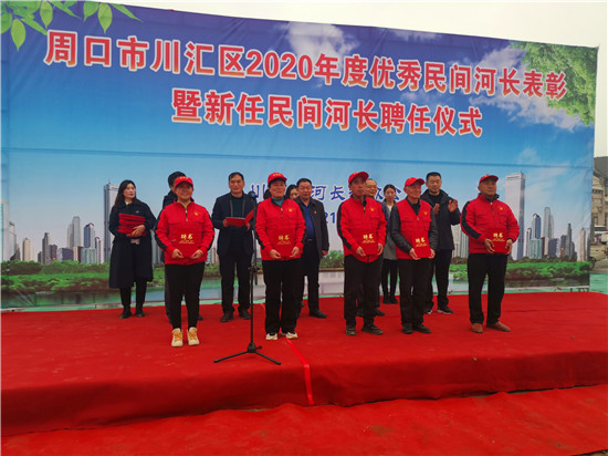 會(huì)場(chǎng)設(shè)在中州路橋北頭向東100米的沙潁河北岸。區(qū)河長(zhǎng)辦主任李海濤宣讀《川匯區(qū)河長(zhǎng)制辦公室關(guān)于表彰2020年優(yōu)秀“民間河長(zhǎng)”的決定》《周口市川匯區(qū)河長(zhǎng)制辦公室關(guān)于聘任“民間河長(zhǎng)”的通知》。與會(huì)領(lǐng)導(dǎo)共同為10名受表彰的優(yōu)秀“民間河長(zhǎng)”頒發(fā)榮譽(yù)證書(shū),為20名新任“民間河長(zhǎng)”頒發(fā)聘任證書(shū)。