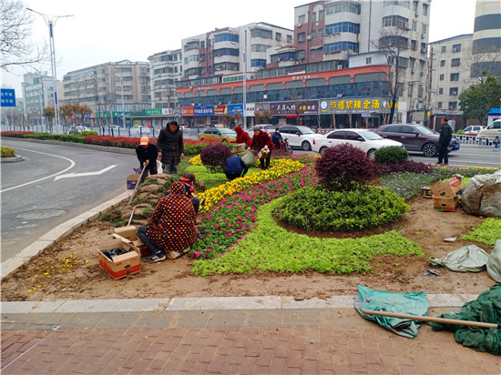一場(chǎng)春雨過(guò)后,處處洋溢著勃勃生機(jī)。3月20日上午,記者在周口中心城區(qū)大慶路與交通大道交叉口處的紅綠燈旁看到,園藝工作人員正在忙碌著補(bǔ)種花木,黃色、綠色、紅色的花兒平鋪在一起組合成一道亮麗的風(fēng)景,扮靚了街頭,令人賞心悅目。③2