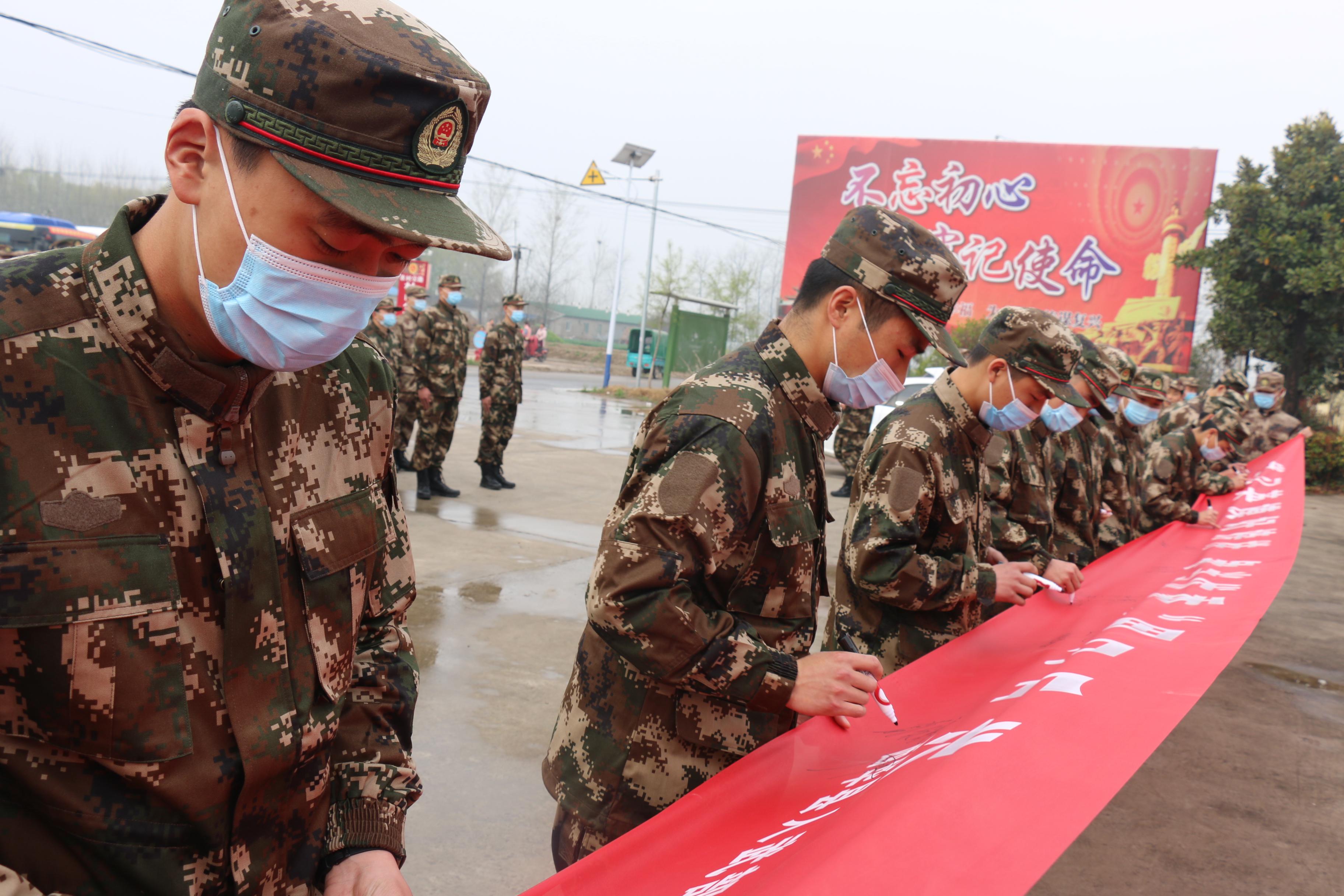 最后,全體新兵紛紛在學(xué)習(xí)英模好榜樣,爭(zhēng)當(dāng)優(yōu)秀“周口兵”大紅橫幅前宣誓簽字表決心:一定要傳承革命先烈英勇意志,絕不辜負(fù)祖國(guó)和人民的重托,堅(jiān)定走好軍旅人生每一步,做‘四有’新時(shí)代革命軍人。”