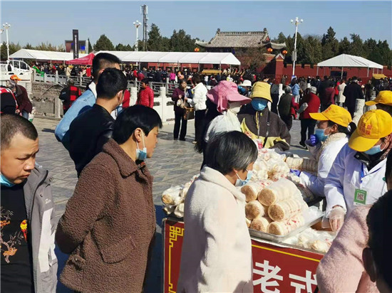 “先嘗后買,知道好歹。我們的壓縮饃是剛出鍋的,歡迎品嘗了。”記者在太昊陵廟會現(xiàn)場不斷聽到這樣的吆喝聲。