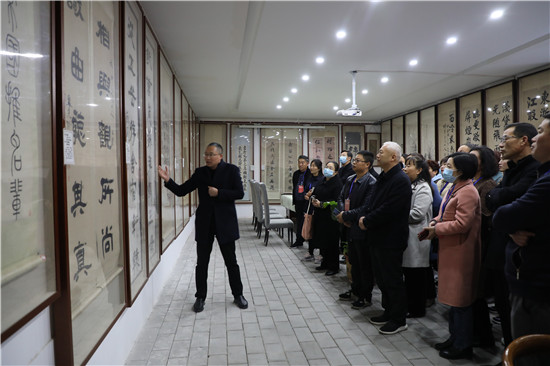 川匯區(qū)收藏家協(xié)會(huì)的藏品以字畫為主,突出特點(diǎn)是藏品類型鮮明?,F(xiàn)有四個(gè)展廳,三個(gè)廳展出的是宋代以來的數(shù)百件名人名家書畫墨跡;另一個(gè)廳展出的是二十世紀(jì)六七十年代老一代藝術(shù)家響應(yīng)黨的號(hào)召深入農(nóng)村創(chuàng)作的一大批極富鄉(xiāng)土氣息的作品。李榮耀回顧了每一件藏品的來歷,介紹其作者生平,品評(píng)其藝術(shù)特色,衡量其文化影響,把大家?guī)У搅怂囆g(shù)的幻境之中。學(xué)員們暢游藝術(shù)殿堂,盡享文化盛宴,紛紛表示,研學(xué)活動(dòng)開闊了學(xué)術(shù)眼界,豐富了歷史文化知識(shí),提升了文化藝術(shù)素養(yǎng)。雙方希望進(jìn)一步加強(qiáng)學(xué)術(shù)交流合作、增進(jìn)友好往來、傳承民族文化、共創(chuàng)美好明天。②9