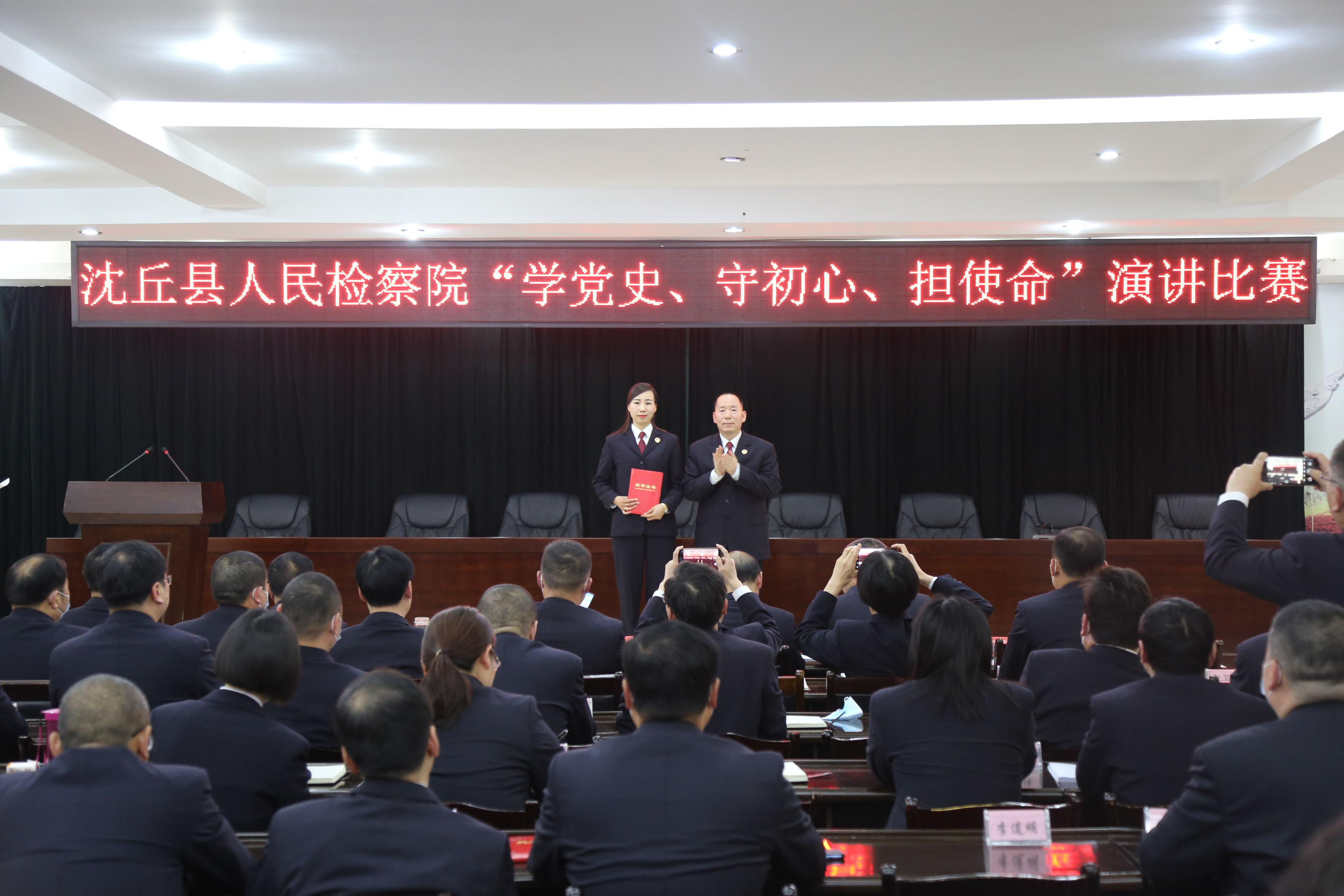 為進(jìn)一步深化全體干警對(duì)政法隊(duì)伍教育整頓工作重要性的認(rèn)識(shí),進(jìn)一步激發(fā)干警參與教育整頓的積極性和主動(dòng)性,3月23日下午,沈丘縣人民檢察院開展了“學(xué)黨史、守初心、擔(dān)使命”政法隊(duì)伍教育整頓主題演講比賽,沈丘縣人民檢察院黨組書記、檢察長(zhǎng)李世龍帶領(lǐng)院領(lǐng)導(dǎo)班子成員擔(dān)任評(píng)委,黨組副書記、副檢察長(zhǎng)作了賽前講話,比賽由黨組成員、政治部主任胡新建主持。