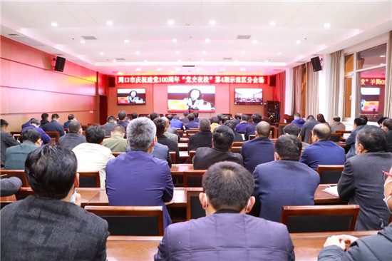 黨史“夜宴”,如約而至。3月24日晚7時,周口市慶祝中國共產黨成立100周年“黨史夜?!钡谒钠跍蕰r開講,周口市城鄉(xiāng)一體化示范區(qū)分會場座無虛席,區(qū)全體班子成員及部分黨員干部認真收聽收看。