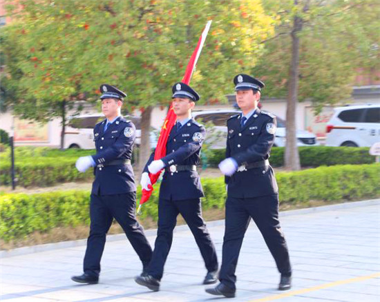“起來,不愿做奴隸的人們......”3月25日清晨,伴隨著莊嚴(yán)激昂的《義勇軍進(jìn)行曲》,由3名法警組成的國旗護(hù)衛(wèi)隊(duì)邁著整齊的步伐來到旗桿下,沈丘縣人民法院全體干警身穿制服,佩戴法徽,整齊列隊(duì),神情肅穆,懷著對祖國的崇高敬意,用注目禮向冉冉升起的五星紅旗,表達(dá)司法為民的使命擔(dān)當(dāng)。