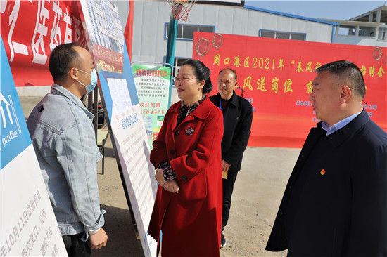 3月24日,周口港區(qū)舉辦以“春風(fēng)送崗位、就業(yè)暖民心”為主題的2021年“春風(fēng)行動(dòng)”啟動(dòng)儀式暨港區(qū)春季用工招聘會(huì)。港區(qū)黨委委員張東立,港區(qū)黨委委員、紀(jì)委書(shū)記李素芹,周口市人才交流中心主任李志參加啟動(dòng)儀式。