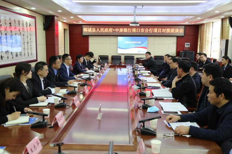 3月24日下午,中原銀行周口分行與鄲城縣人民政府成功召開項(xiàng)目洽談對(duì)接交流會(huì)。中原銀行周口分行行長(zhǎng)周朝陽(yáng),行領(lǐng)導(dǎo)付軍偉、李巍、丁瑞及相關(guān)部門負(fù)責(zé)人,鄲城縣人民政府縣長(zhǎng)李全林,縣委常委、常務(wù)副縣長(zhǎng)胡友濤及有關(guān)局委負(fù)責(zé)人出席座談會(huì)。