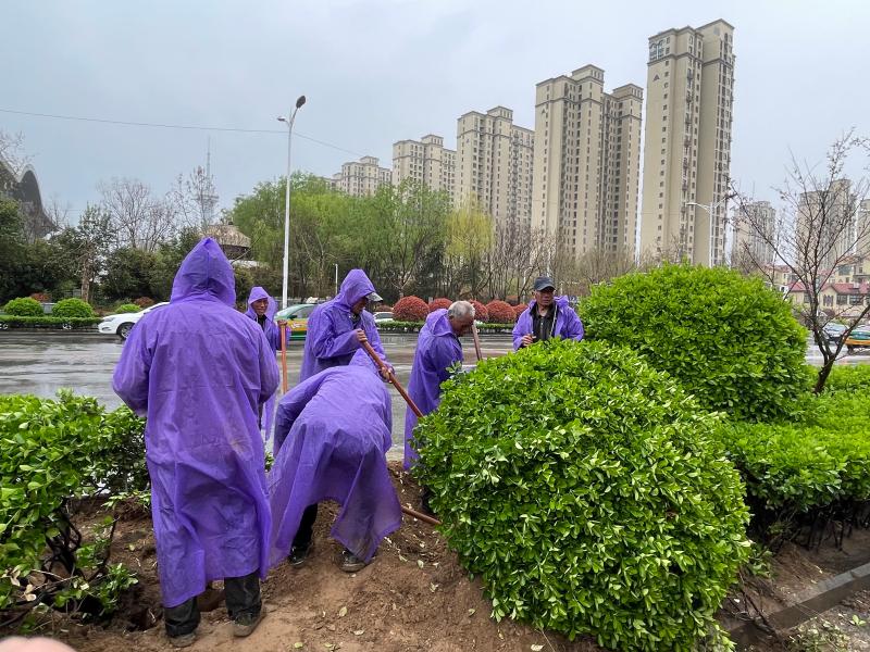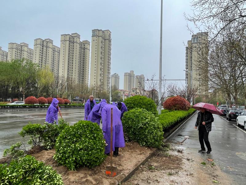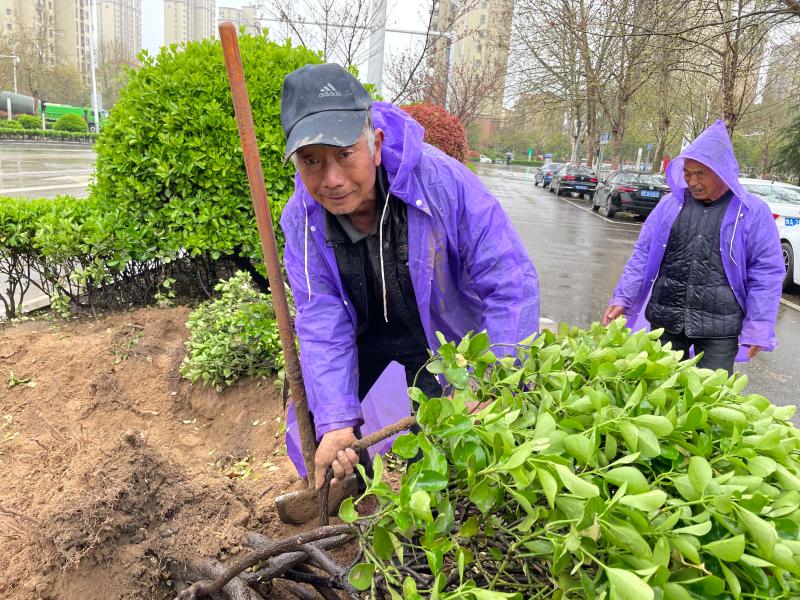 春天正是增綠補(bǔ)綠、扮靚城市“顏值”的好時機(jī)。3月26日下午,春雨淅淅瀝瀝,記者在市體育中心附近看到,園林工人正在冒雨移走綠植。據(jù)介紹,他們今天要把此地的綠植移走,以便后續(xù)種植花卉。綠植移走后,園林工人給空地蓋上防塵布,防止泥土被雨水沖到道路上。