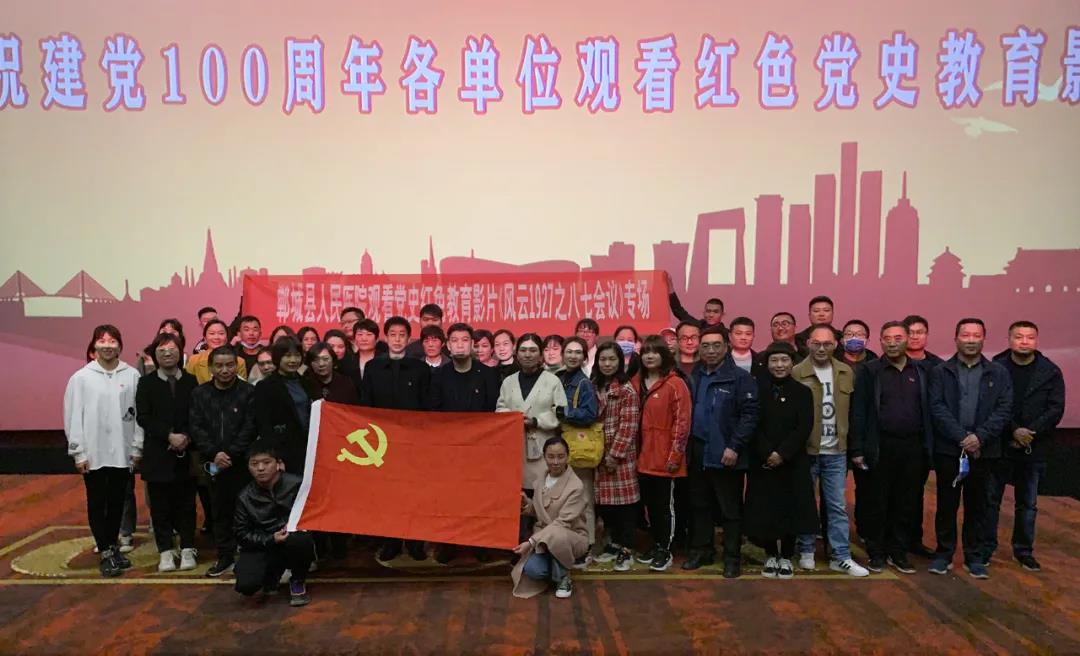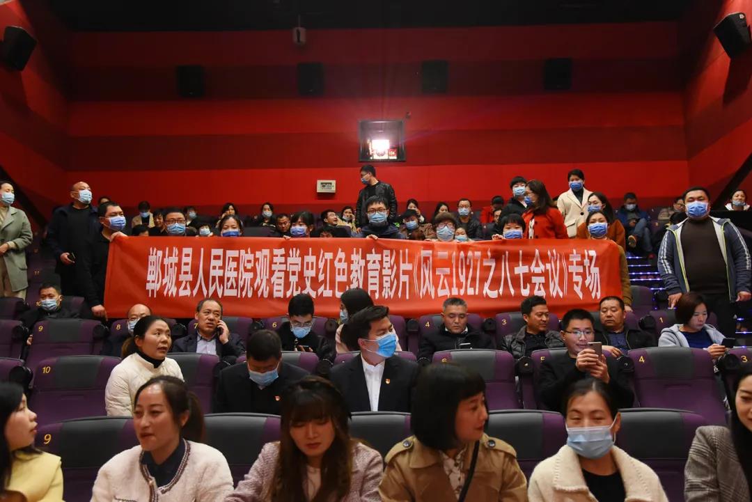 為慶祝中國共產(chǎn)黨成立100周年,深入貫徹落實(shí)習(xí)近平新時(shí)代中國特色社會主義思想,深入學(xué)習(xí)習(xí)近平總書記關(guān)于“用黨的歷史教育黨員、教育干部、教育群眾尤其是教育青少年”的重要指示要求,3月26日下午,鄲城縣人民醫(yī)院黨委組織全院100余名共產(chǎn)黨員在鄲城縣奧斯卡影城集中觀看黨史軍史紅色教育影片《風(fēng)云1927之八七會議》。