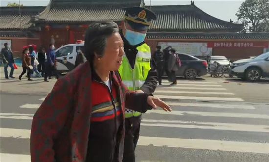 淮陽(yáng)區(qū)城市交通綜合治理辦公室工作人員幫助行走困難的朝祖群眾。