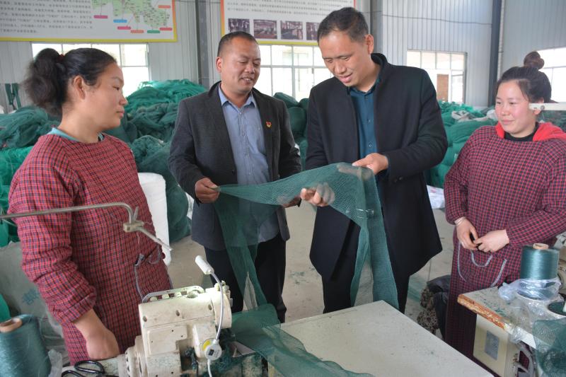 3月27日,商水縣平店鄉(xiāng)李崗村“商水縣龍巢網(wǎng)業(yè)公司”經(jīng)理羅國昌向村黨支部書記李金棋(左二)介紹漁網(wǎng)編織產(chǎn)業(yè)產(chǎn)銷帶貧情況。羅國昌和妻子劉清華2009年創(chuàng)辦漁網(wǎng)編織加工廠、2017年擴建新區(qū),現(xiàn)有3個大型生產(chǎn)車間庫房,發(fā)展30多個分廠、40多個聯(lián)系點,年產(chǎn)各種成品漁網(wǎng)500萬條,產(chǎn)品銷往國內(nèi)江蘇、安微、山東、河北、湖北等10多個省區(qū)和30多個沿??h市水產(chǎn)公司,部分出口到俄羅斯及東南亞地區(qū),年創(chuàng)產(chǎn)值約1.6億元,精準幫扶225戶群眾脫貧,帶貧群眾有1萬余人。