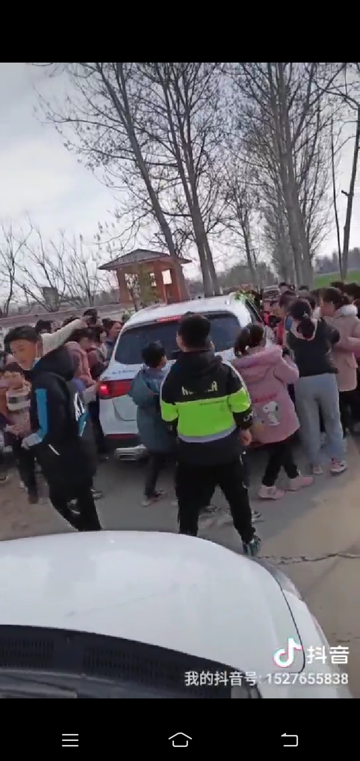 “我淚水一直在眼里打轉(zhuǎn),現(xiàn)在心情都沒平復(fù)?!苯ㄍ⑼⒄f(shuō),“因?yàn)樾菁偾敖o學(xué)生們發(fā)了喜糖,婚車路過時(shí)恰趕學(xué)生下課,正好遇見這群可愛的孩子,真的特別感動(dòng)。眼前的情景也讓婚車上的老公感動(dòng)不已,他忍不住拿手機(jī)記錄下了這一幕”。