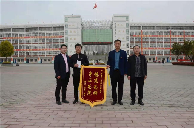 “太感謝你們了,幫了我的大忙,鄲城教師好樣的!”3月29日上午,項(xiàng)城市民孟亞飛專程到鄲城縣第二實(shí)驗(yàn)中學(xué),把一面印著“德高為師 身正為范”的錦旗送到該校教師王輝和校長(zhǎng)朱玉良手上,并連聲致謝。