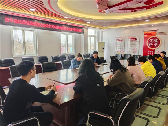 3月24日,西華縣紀(jì)委監(jiān)委派駐農(nóng)業(yè)農(nóng)村局紀(jì)檢監(jiān)察組在派駐單位開(kāi)展黨史學(xué)習(xí)教育活動(dòng),引導(dǎo)派駐單位全體干部職工做到“知史愛(ài)黨、知史愛(ài)國(guó)、知史明智、知史擔(dān)責(zé)”。