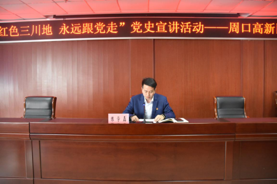 本報(bào)訊(記者韓志剛 通訊員 毛星超)為開展好黨史學(xué)習(xí)教育,激勵(lì)全體黨員不忘初心、牢記使命,3月30日下午,周口高新區(qū)邀請(qǐng)川匯區(qū)委黨校校長(zhǎng)劉美蘭,組織開展了以“紅色三川地 永遠(yuǎn)跟黨走”為主題的黨史宣講活動(dòng)。周口高新區(qū)管委會(huì)全體人員及17個(gè)黨支部代表參加。