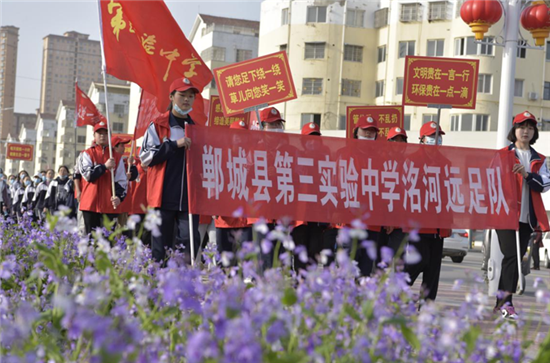 一路上,同學(xué)們在老師和交警的護(hù)送下,喊著響亮的口號走在洺河岸邊,欣賞著洺河美景?!捌綍r沒有靜心觀看洺河,真沒有想到這么美,我為老家鄲城而自豪!”學(xué)生們特別興奮。