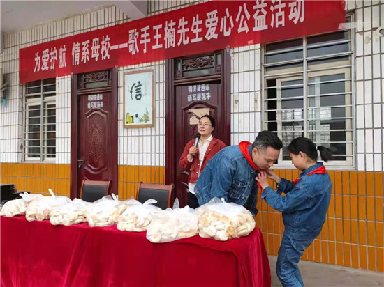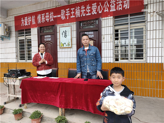 原來(lái),該縣馬廠鎮(zhèn)回族小學(xué)畢業(yè)的歌手王楠,感恩母?,F(xiàn)場(chǎng)為380余名師生送上了壓縮饃,還演唱了《最親的人》《新闖碼頭》等歌曲。很多留守兒童,吃著帶有暖意的壓縮饃,聽著悅耳動(dòng)聽的歌曲,留下了感動(dòng)的淚水。