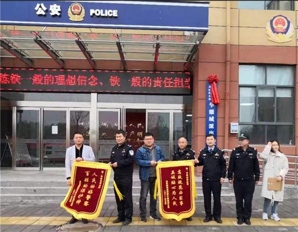 為表達(dá)對(duì)民警的感激之情,4月1日上午,該樓盤項(xiàng)目工地負(fù)責(zé)人一行來(lái)到華耀城派出所送上兩面錦旗。②18