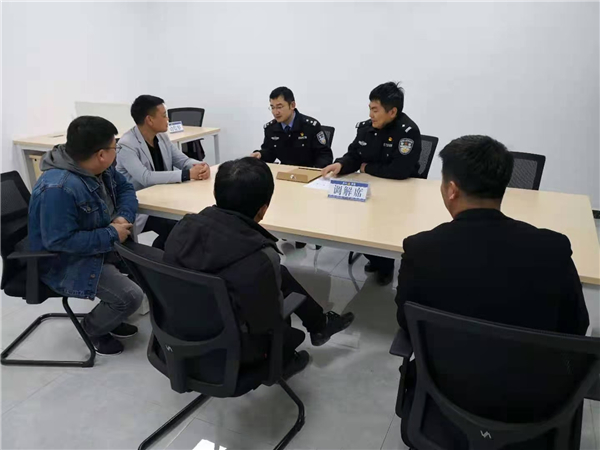 為防止事態(tài)擴(kuò)大,民警周玉博、馬立祥立即責(zé)令當(dāng)事人撤掉條幅、撤離工地,同時(shí)向分局領(lǐng)導(dǎo)匯報(bào),開展相關(guān)處置情況調(diào)查,并向死者家屬宣讀有關(guān)法律條款,講明事實(shí),穩(wěn)定家屬情緒。派出所負(fù)責(zé)人邵海濤帶領(lǐng)民警深入工地,后經(jīng)協(xié)商三方責(zé)任人員,結(jié)合新頒布的《民法典》相關(guān)條文內(nèi)容,民警在現(xiàn)場(chǎng)當(dāng)起了宣講員和調(diào)解員。功夫不負(fù)有心人。3月27日晚上,民警讓參與飲酒人員、班組負(fù)責(zé)人、承建單位與死者家屬四方達(dá)成調(diào)解協(xié)議,從而平息了事態(tài),讓企業(yè)恢復(fù)了正常工作秩序。