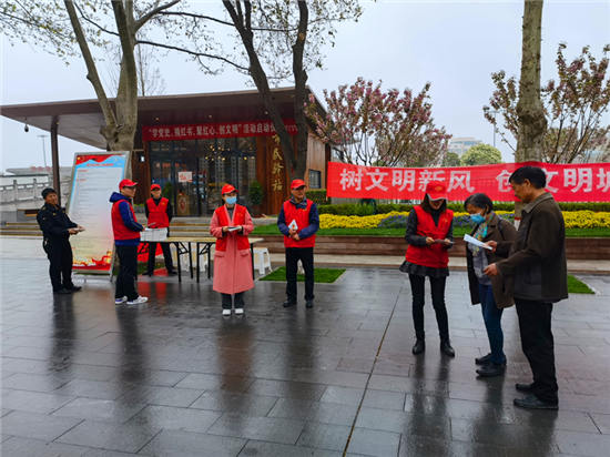 在活動現(xiàn)場,城管志愿者頭戴小紅帽,身穿紅馬甲,向過往群眾發(fā)放講解《周口市文明行為促進條例》,耐心解答市民提出的問題,以實際行動倡導文明、傳播文明,展現(xiàn)城管志愿者的積極風采和良好的精神風貌。②10