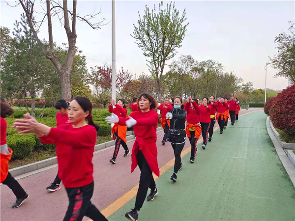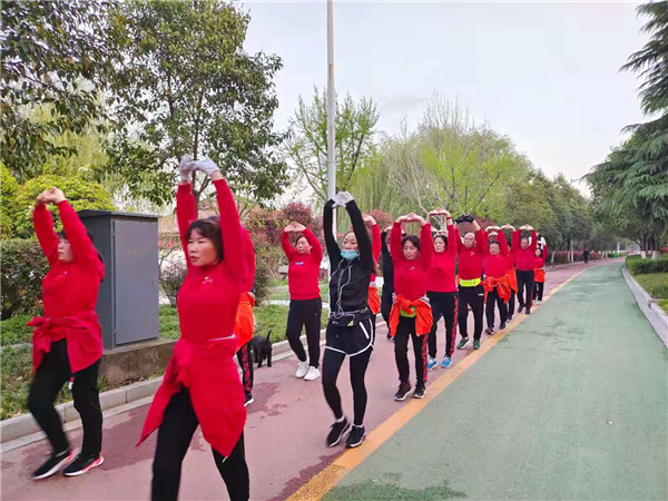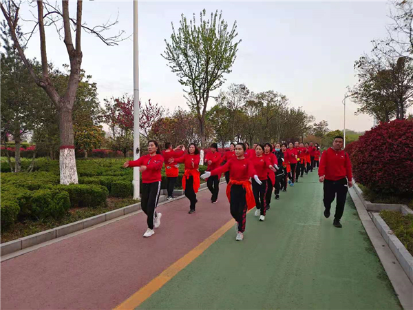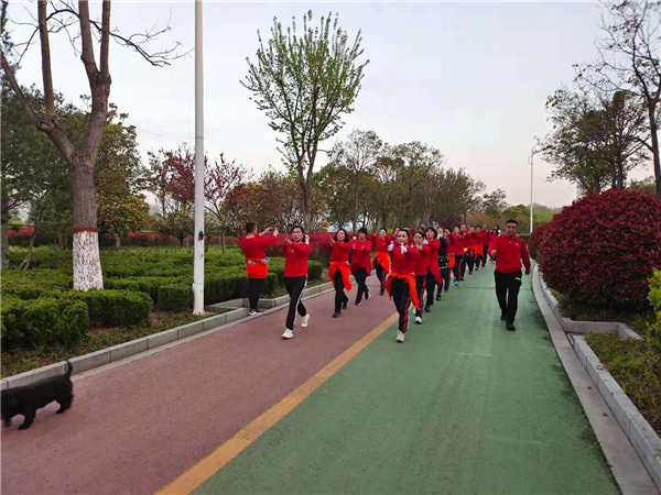 “一!二!三!四!”4月4日清晨,周口公園內(nèi)一支健步走愛(ài)好者身著紅色衛(wèi)衣,在潦亮的口號(hào)聲中,邁著嬌健的步伐,在鮮花綠葉中行進(jìn),撒下一路青春的氣息。②7