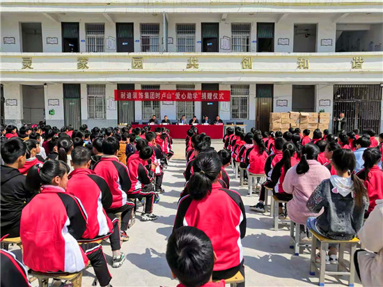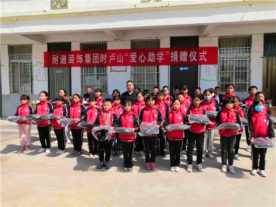 4月6日上午,耐迪裝飾集團董事長時盧山帶著滿滿的愛意,為鄲城縣汲水鄉(xiāng)劉小集小學(xué)的孩子們捐贈了360個書包。
