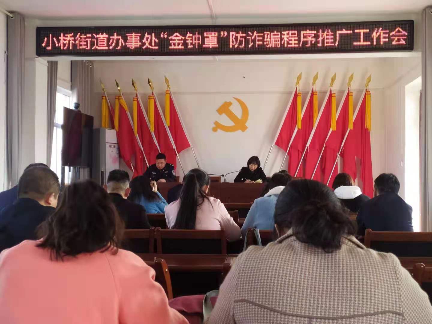 堅(jiān)持宣傳發(fā)動(dòng),高效率推廣應(yīng)用。辦事處采用“線上+線下”“集中+流動(dòng)”的方式,形成鋪天蓋地的宣傳推廣高潮。一是采取現(xiàn)場(chǎng)講解、發(fā)放反電詐宣傳手冊(cè)、擺放宣傳海報(bào)等多種形式以案說(shuō)法;二是社區(qū)黨員、網(wǎng)格員和派出所民警通過(guò)進(jìn)小區(qū)、進(jìn)庭院、進(jìn)企業(yè)、進(jìn)學(xué)校、進(jìn)銀行等現(xiàn)場(chǎng)推廣演示“金鐘罩”小程序的使用,手把手教會(huì)群眾注冊(cè)“金鐘罩”,“零距離”向群眾宣傳防范電信網(wǎng)絡(luò)詐騙知識(shí);三是在轄區(qū)主要街道、廣場(chǎng)、小區(qū)等懸掛防范電信詐騙宣傳標(biāo)語(yǔ);四是利用沿街門(mén)店LED屏滾動(dòng)播放反電詐宣傳標(biāo)語(yǔ);五是通過(guò)公眾號(hào)、微信群宣傳《致轄區(qū)群眾一封公開(kāi)信暨推廣安裝“金鐘罩”小程序》。日均出動(dòng)宣傳流動(dòng)車(chē)2輛,攜帶宣傳小喇叭16個(gè),累計(jì)發(fā)放防詐騙宣傳頁(yè)6000余份,懸掛宣傳條幅110條,擺放宣傳展板30多塊。
