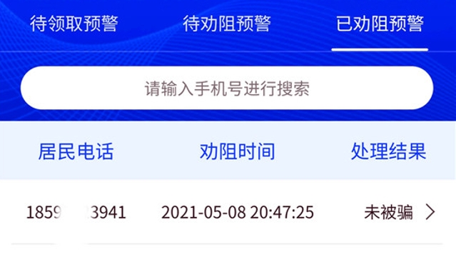 5月8日,鄲城縣公安局南關派出所社區(qū)民警收到“金鐘罩”推送的反詐預警信息,轄區(qū)居民郭某有受騙風險,社區(qū)民警第一時間聯(lián)系郭某核實了解相關情況并及時予以制止。
