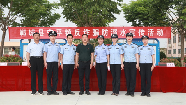 近日,鄲城縣公安局女子反詐宣傳隊負責人王冰等與縣公安局反詐中心民警一起,來到寧平一中,開展反詐騙、防溺水宣傳。寧平鎮(zhèn)鎮(zhèn)長王樹勤參加活動。