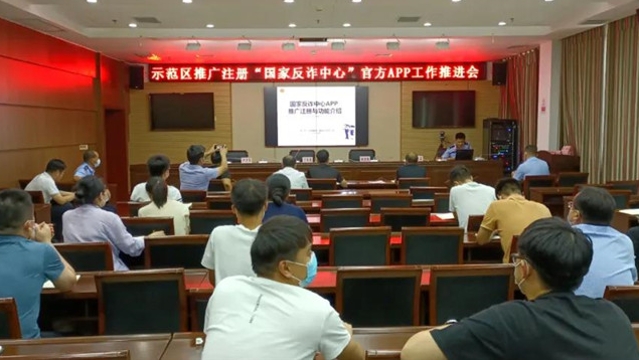 8月11日,示范區(qū)召開推廣注冊“國家反詐中心”官方APP工作推進會,安排全區(qū)反電詐工作,現(xiàn)場演示并部署推廣注冊“國家反詐中心”官方APP工作任務。區(qū)二級調研員丁有亮,示范區(qū)公安分局局長何學民出席會議。