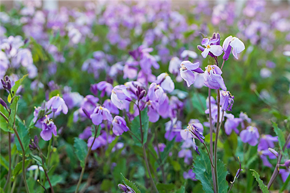 據(jù)了解,諸葛菜也叫二月蘭,因早春農(nóng)歷二月前后開花,所以叫二月蘭,花開溫柔,娟秀,清雅,很是招人喜歡。而且具有較強的耐寒性與適應(yīng)性,自繁能力比較強,一次播種能年年自成群落,能夠有效控制裸地揚塵起沙、抑制雜草生長。諸葛菜花花期相當(dāng)長,能夠從早春時節(jié),一直開到暮春初夏間,當(dāng)百花盛開時,它依然露著笑臉。因此著實是春天里的“早到遲退”之花。③5