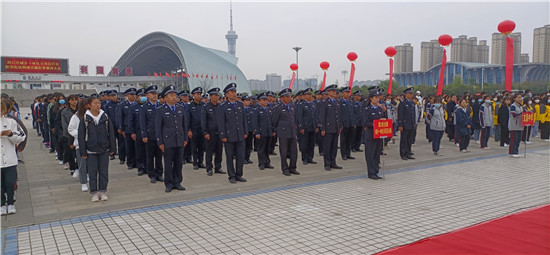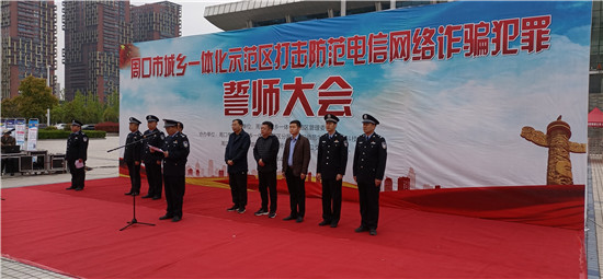 4月11日,市城鄉(xiāng)一體化示范區(qū)舉行打擊防范電信網(wǎng)絡詐騙犯罪千人誓師大會。示范區(qū)管委會二級調研員丁有亮,周口公安局示范區(qū)分局黨委書記、局長何學民出席大會。周口公安局示范區(qū)分局民警,示范區(qū)各鄉(xiāng)辦人員,周口師范學院、周口科技職業(yè)大學、周口交通技師學院師生代表近千人參加誓師大會。