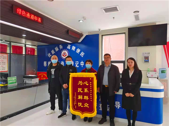 4月12日上午,辦事群眾管先生來到鄲城縣不動(dòng)產(chǎn)登記中心送上一面印有“心系群眾,為民解憂”的錦旗,對(duì)登記中心真心為民的服務(wù)態(tài)度和高效的辦事效率表示感謝。