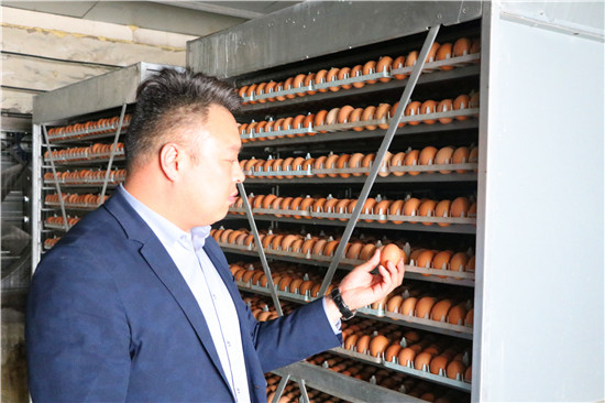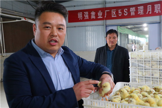 2017年,有著多年禽業(yè)市場經(jīng)驗(yàn)的朱明明開始想獨(dú)立創(chuàng)業(yè),經(jīng)朋友介紹與玉皇村黨支部書記張振冬相識(shí),一邊是想找個(gè)合適的地方投資,一邊是正為招商引資的事發(fā)愁,倆人一拍即合。朱明明拿出所有積蓄800多萬元,在玉皇村投資建設(shè)了河南明強(qiáng)禽業(yè)有限公司?!霸摴局饕獜氖路N雞、肉雞養(yǎng)殖,雞苗孵化、銷售?!敝烀髅鹘榻B,目前,該公司有員工90多人,全部是附近村莊的村民,他們大多因?yàn)槟挲g偏大或者在家?guī)Ш⒆訜o法外出務(wù)工。該公司租用村民的土地,再為村民提供就業(yè)崗位,把種地的雙手解放出來,工作輕松點(diǎn),還能多賺點(diǎn)錢,也不耽誤照顧孩子與老人。因地制宜發(fā)展扶貧產(chǎn)業(yè),推動(dòng)貧困群眾增收是該企業(yè)的初衷。