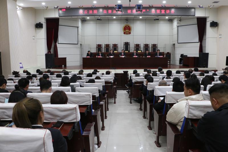 為進(jìn)一步推進(jìn)隊伍教育整頓工作,弘揚刀刃向內(nèi)的自我革命精神,4月12日,沈丘縣法院組織召開“自查從寬,被查從嚴(yán)”政策宣講會,縣紀(jì)委監(jiān)委駐派駐紀(jì)檢監(jiān)察組組長、黨組副書記王宇主持宣講,全體干警參會學(xué)習(xí)。