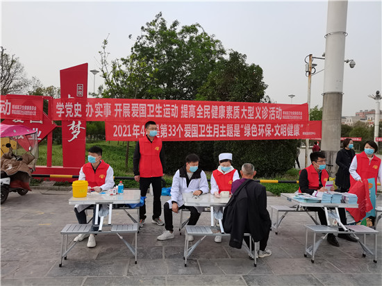 此次活動現(xiàn)場,參與活動的各單位通過拉橫幅、張貼海報、發(fā)放愛國衛(wèi)生月倡議書、義診、健康咨詢和免費(fèi)為群眾發(fā)放藥品、免費(fèi)測量血壓血糖等方式,結(jié)合黨史學(xué)習(xí)教育內(nèi)容,廣泛宣傳愛國衛(wèi)生月活動的意義,向廣大群眾普及相關(guān)健康知識。①9