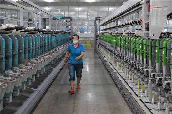 4月20日,位于商水經(jīng)濟(jì)技術(shù)開發(fā)區(qū)的周口市佳利達(dá)紡織(集團(tuán))有限公司員工正在車間察看機(jī)器運(yùn)行情況。據(jù)了解,該公司系招商引資企業(yè),現(xiàn)有職工369人,擁有10萬紗錠生產(chǎn)線,2019年以來獲得國家專利19項(xiàng),實(shí)現(xiàn)了生產(chǎn)銷售自動化、數(shù)字化、智能化、信息化,先后被評為周口工業(yè)50強(qiáng)企業(yè)、河南省制造業(yè)與互聯(lián)網(wǎng)融合發(fā)展試點(diǎn)示范企業(yè)。周口日報·周道客戶端記者 付永奇攝