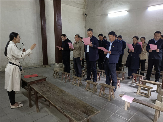 在新縣箭廠河鄉(xiāng)列寧小學(xué)舊址教室里,中心組成員認(rèn)真聆聽大別山斗爭的殘酷,革命烈士舍生取義的英雄事跡,上了一堂生動的黨課。在紅田慘案遺址,當(dāng)了解到眼前這片30平方米的水田曾經(jīng)是反動派屠殺共產(chǎn)黨員和革命群眾的刑場,300多名英雄倒在這里,獻(xiàn)出寶貴的生命,這浸著鮮血的田地被命名為“紅田”時,大家被紅田慘案深深震撼,為共產(chǎn)黨人堅守信念、視死如歸、前仆后繼的革命精神所感動。